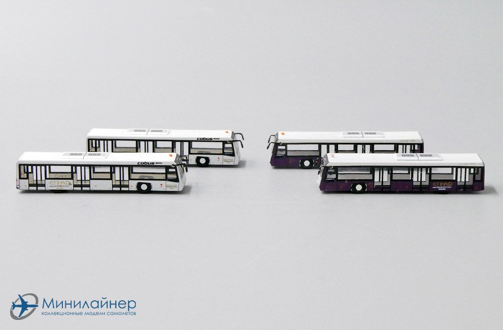 Набор аэропортовых автобусов для перевозки пассажиров на перроне. Дополнение к макету аэропорта или модели самолета в масштабе 1:200.