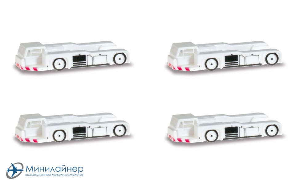 Набор аэродромных тягачей для буксировки самолетов на перроне. Предназначен для модели аэропорта или как дополнение к модели самолета в масштабе 1:400.